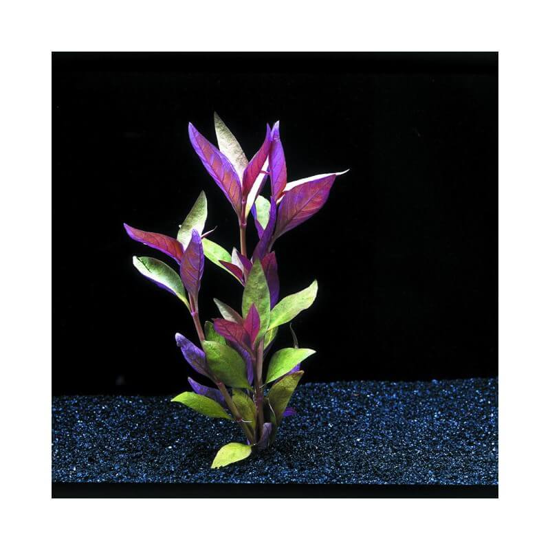 Superbe plante d'aquarium rouge, l'alternanthera lilacina à besoin d'un bon éclairage et d'un sol nutritif pour exprimer son potentiel.