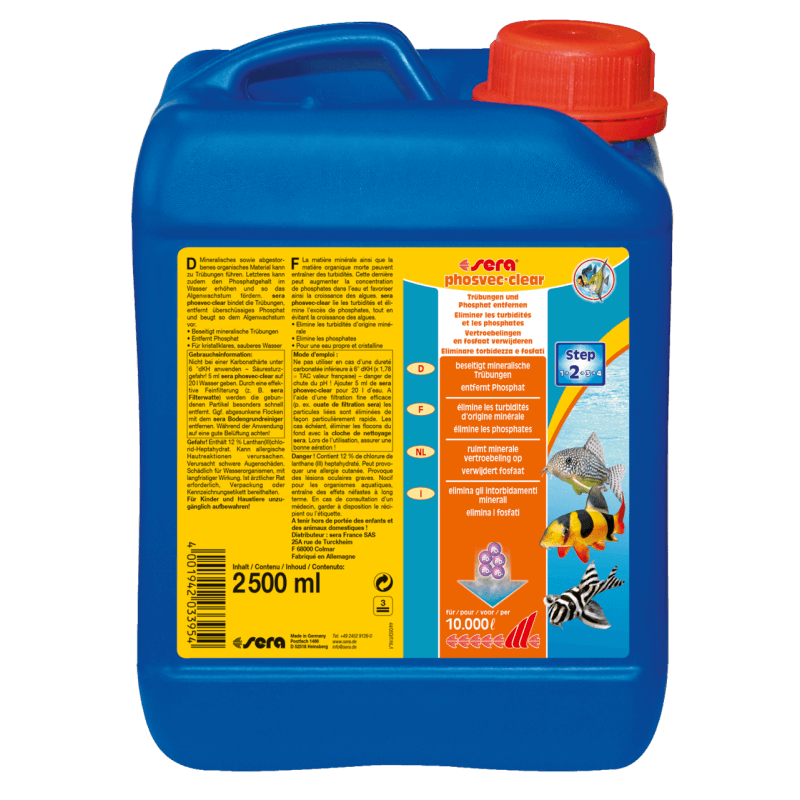 sera phosvec・clear lie instantanément les turbidités, permettant au filtre de les traiter.