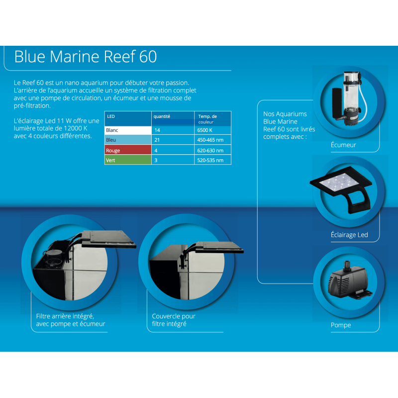 Le Reef 60 est un nano aquarium bien conçu avec l'ensemble des équipements nécessaires pour débuter votre passion.