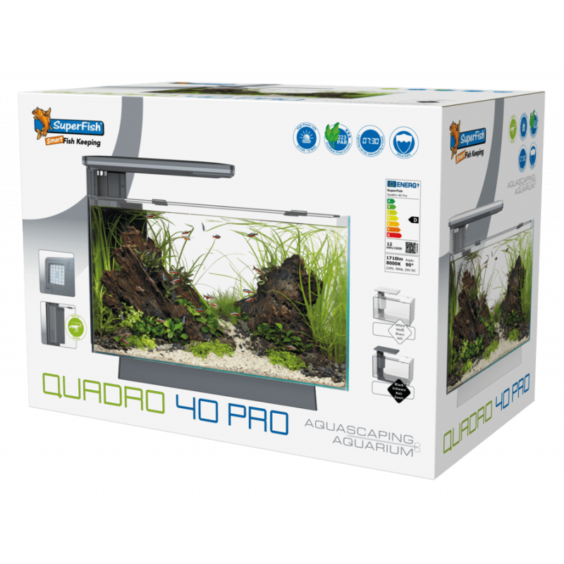 Le Superfish Quadro 40 est un aquarium moderne, conçu pour être facile à utiliser et idéal pour les personnes à la recherche d'un bel aquarium mais souhaitant passer peu de temps à l'entretien.