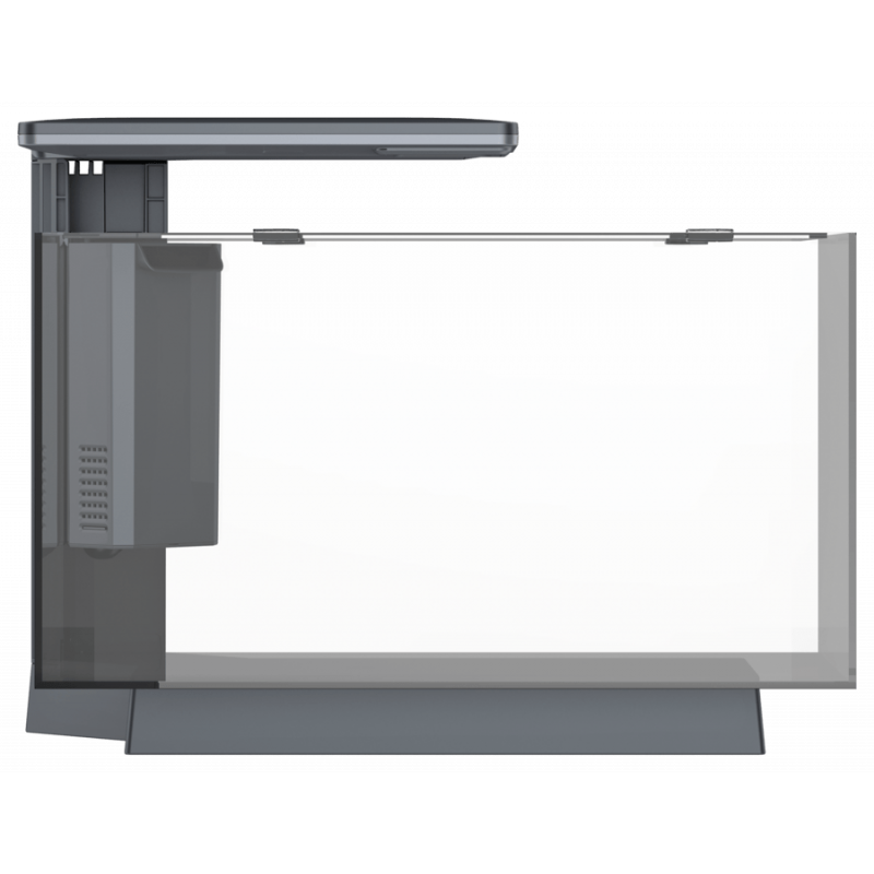 Le système de filtration intégré maintient l'eau de l'aquarium propre et comporte un espace pour le chauffage de l'aquarium, qui peut ainsi être monté en toute sécurité et à l'abri des regards.