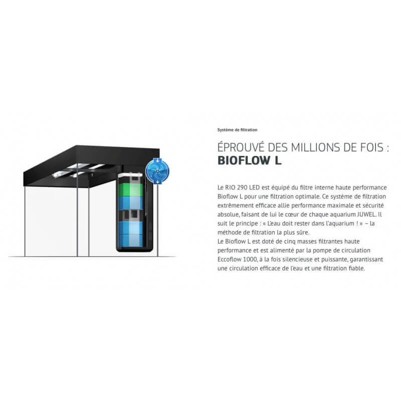 Afin d’assurer une filtration optimale, l’aquarium RIO 290 LED est équipé d’un filtre Bioflow L puissant.