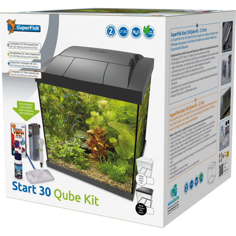 Le SuperFish Start 30 Qube Kit est un aquarium équipé et prêt à l’emploi, idéal pour les aquariophiles débutants. Avec son design moderne en forme de cube, il offre une vue optimale sur vos poissons tout en s’intégrant facilement dans tout intérieur.