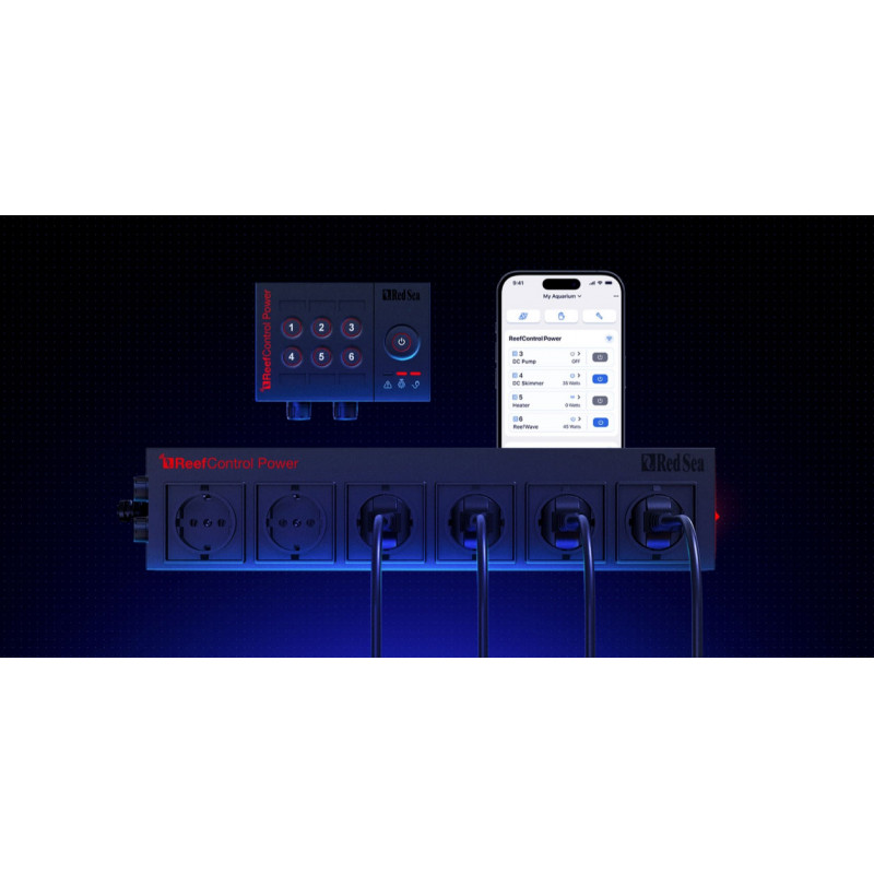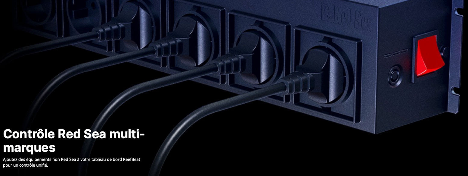 Le Red Sea ReefControl Power Deluxe est un boîtier d’alimentation intelligent doté de prises contrôlables via l’application ReefBeat, mais aussi d’un panneau de contrôle manuel rétroéclairé. Il permet d’automatiser vos équipements électriques (chauffage, ventilateurs, pompe, ozoniseur, etc.) selon les données des sondes ReefSense, tout en offrant un contrôle physique instantané et sécurisé.