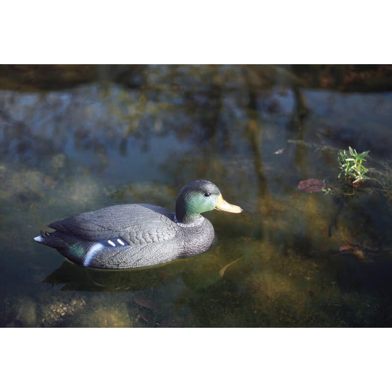 Canard Colvert mâle flottant en plastique pour bassin extérieur.