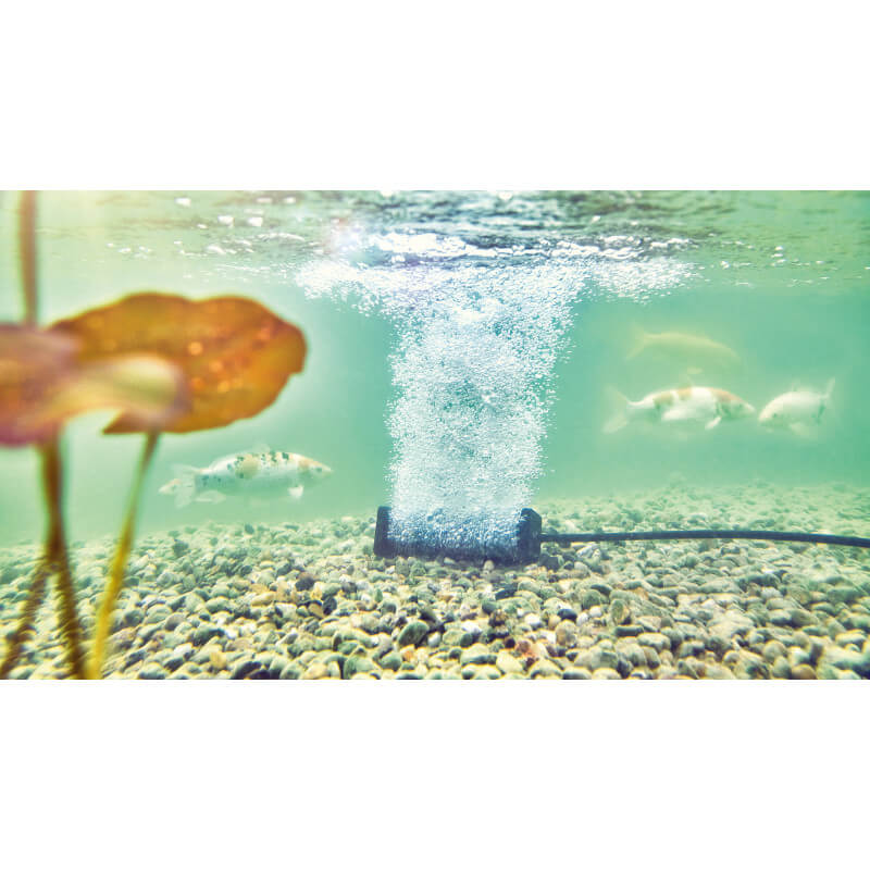 FINES BULLES: Le raccord d'aération AquaOxy S offre un flux efficace et discret de fines bulles d'air dont les perles aèrent les bassins de baignade, à poissons ou à carpes Koï