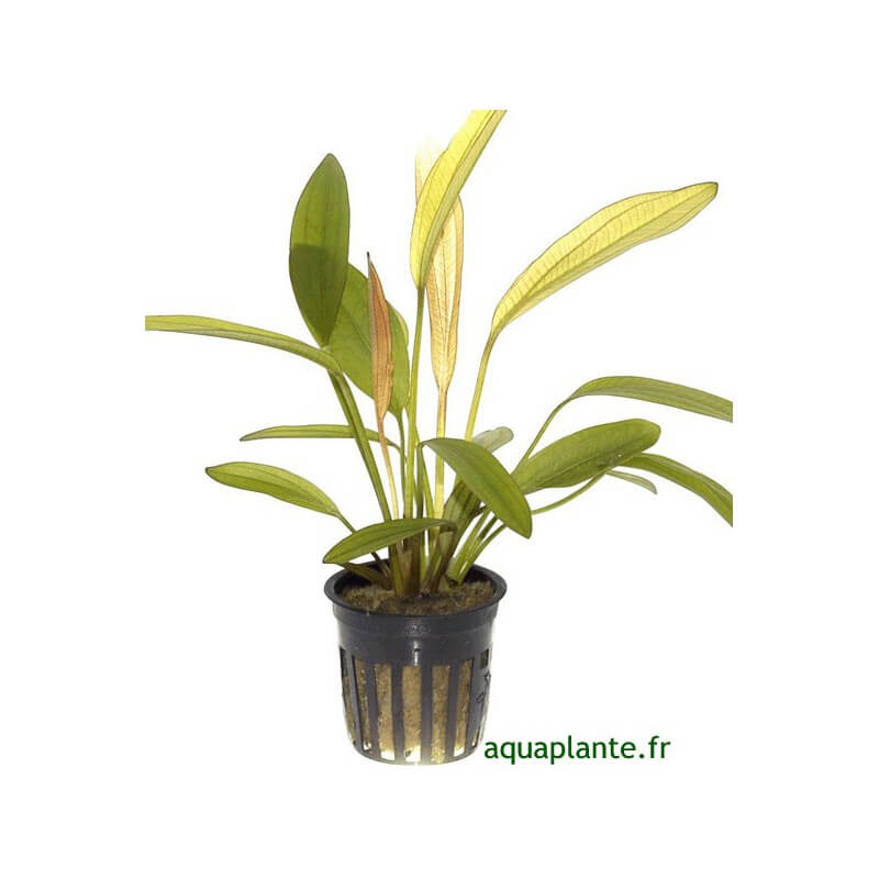 C'est une séduisante plante aquatique ensiforme à feuilles rouge rubis.