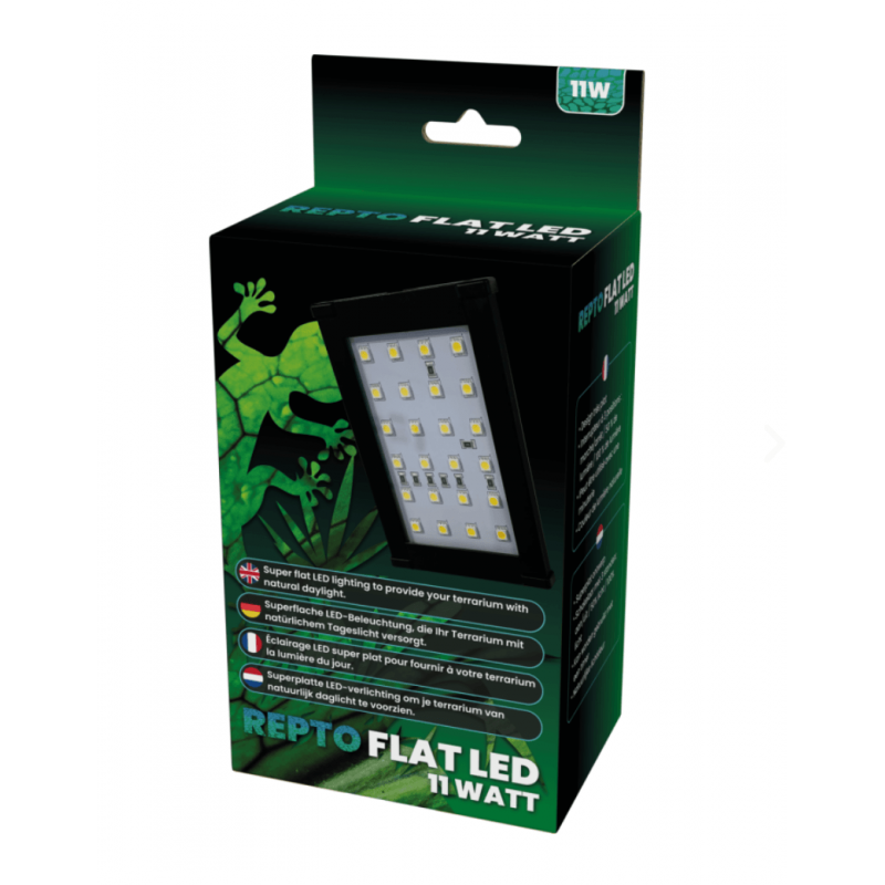 La Repto Flat LED 11 Watt a été conçue pour offrir un éclairage clair et confortable, sans compliquer votre installation. Elle s’adresse aux passionnés qui souhaitent illuminer leur terrarium avec une solution discrète, économique et respectueuse des animaux.
