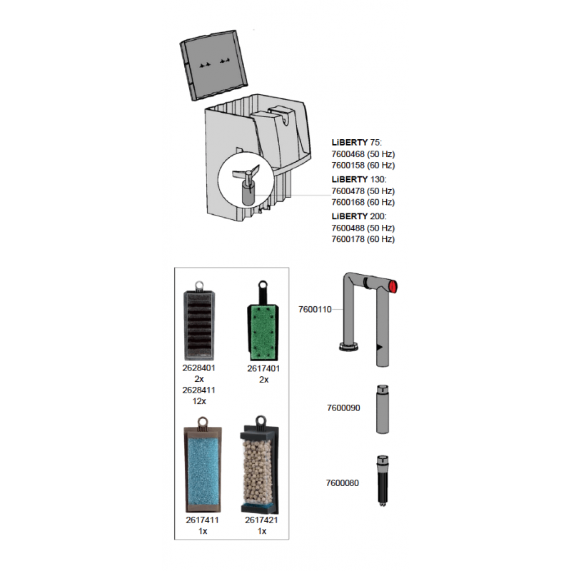 Entretien ultra-simple. Contrairement aux filtres externes complexes, le Liberty 75 propose un entretien accessible a tous. Le couvercle sert de plateau de transport pour les cartouches, vous pouvez donc nettoyer vos medias sans faire de dega'ts. Les cartouches sont interchangeables, vous pouvez customiser votre filtration selon vos besoins (plus de biologique si vous avez beaucoup de poissons, plus de chimique si vous luttez contre les algues, etc.).