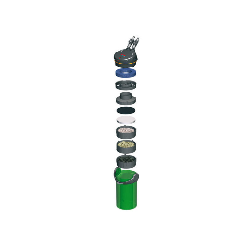 Paniers de filtration rechargeables individuellement : L'Ecco-Pro 300 dispose de 3 paniers pratiques que vous remplissez selon vos besoins. Vous pouvez combiner differents medias : mousse mecanique, substrat biologique, nouilles ceramiques, charbon actif. C'est vous qui decidez de votre « recette » de filtration.