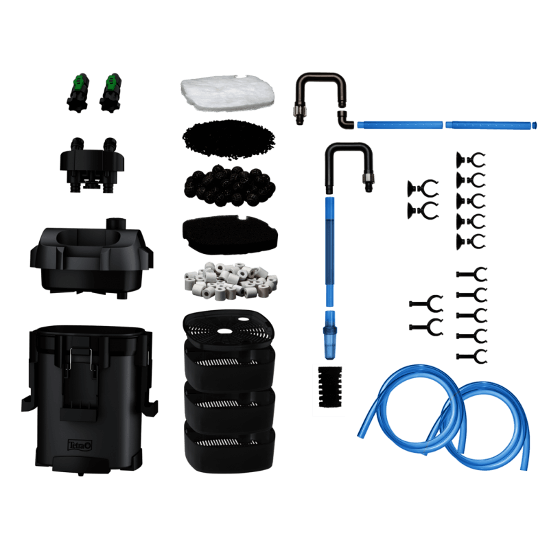 La structure à plusieurs paniers et divers éléments filtrants nettoient l'eau de l'aquarium de manière fiable et efficace en décomposant les débris alimentaires.