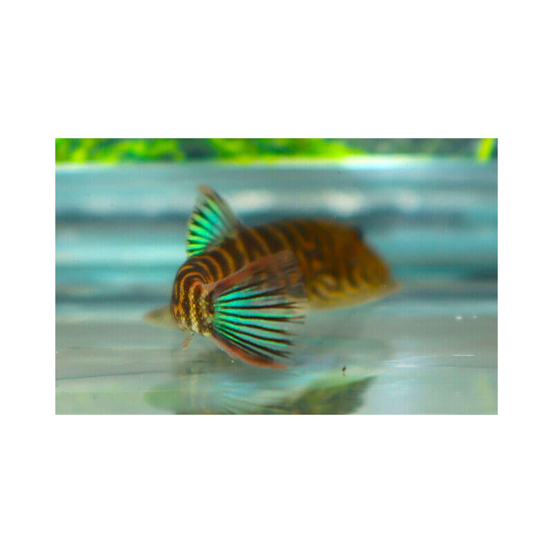 Le Gastromyzon sp. Blue Zebra est une splendide lochète de Bornéo aux reflets bleutés et rayures zébrées.