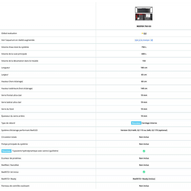 Description Red Sea Reefer™ 750 G3 Blanc (Aquarium + meuble)