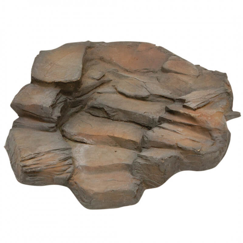 Élément de cascade en escalier courbe à gauche, de dimension 580 x 530 x 180mm (L x l x Ht), pour débit de 3500 l/h couleur pierre, aspect naturel, s’utilisant comme source, milieu de ruisseau ou chute d'eau dans le bassin.