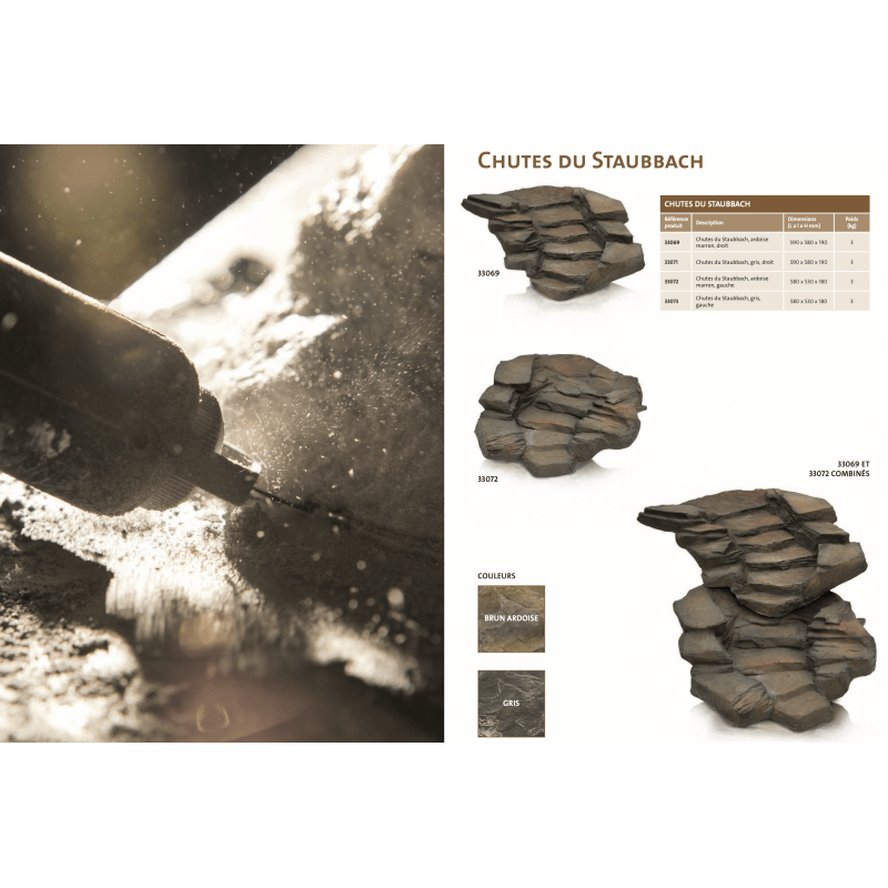 Exemple de mise en situation: "Oase Chutes du Staubbach, ardoise marron gauche" + "Oase Chutes du Staubbach, ardoise marron droit"