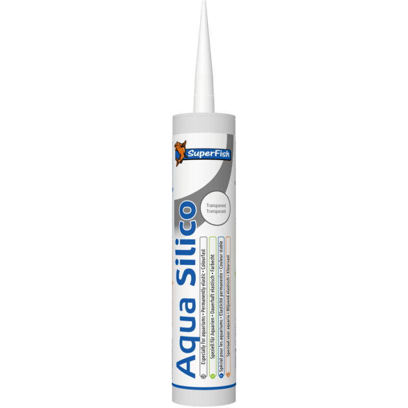 Mastic silicone pour le collage d'aquariums, de terrariums et autres vitres, à élasticité permanente, résistant aux UV, aux intempéries, à la coloration et à l'eau.