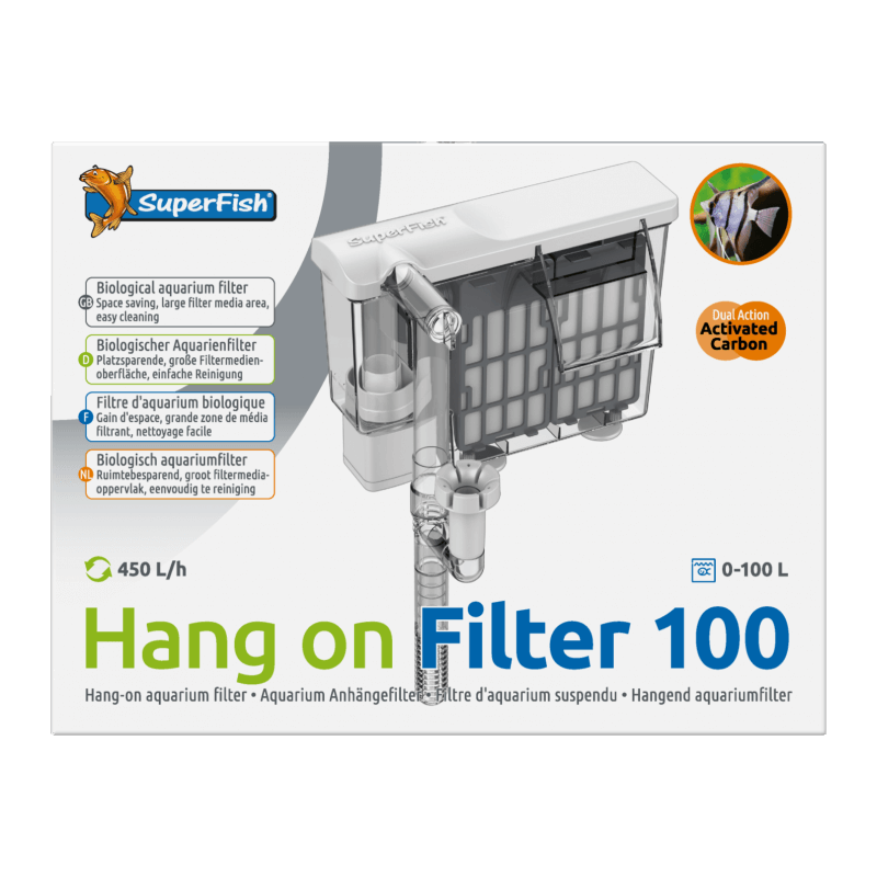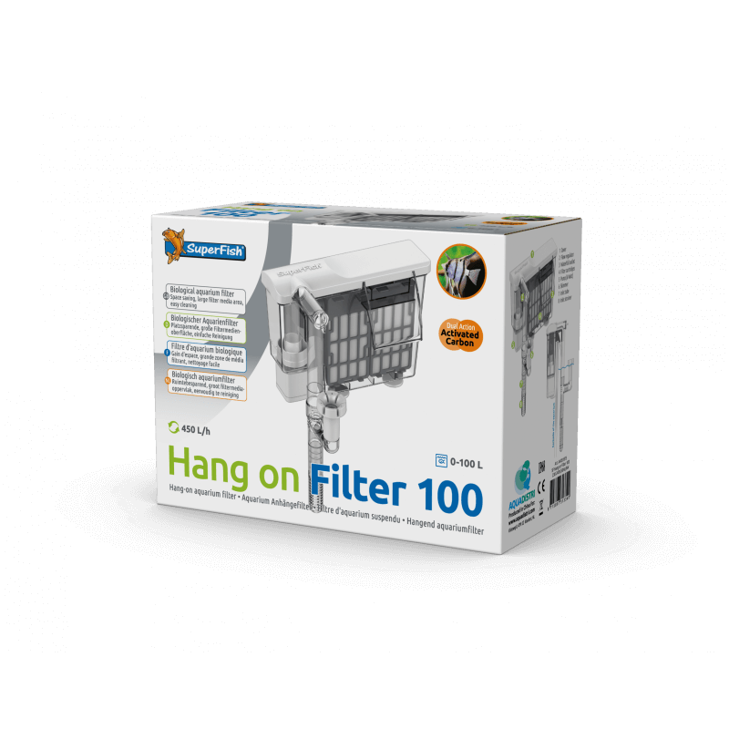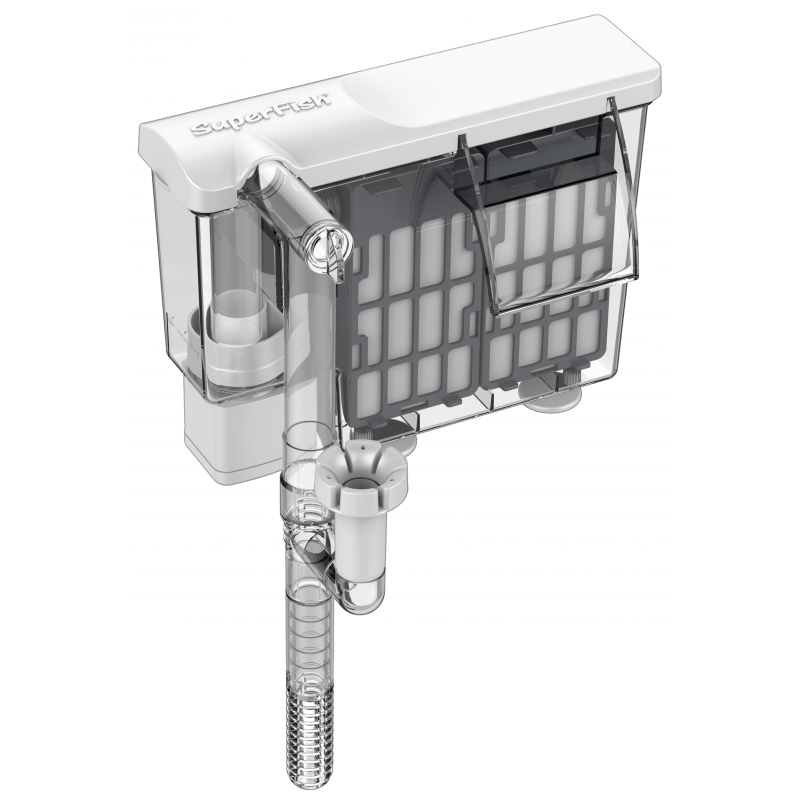 Le montage suspendu du filtre biologique à l’arrière de l’aquarium permet d’économiser de l’espace dans l’aquarium. H