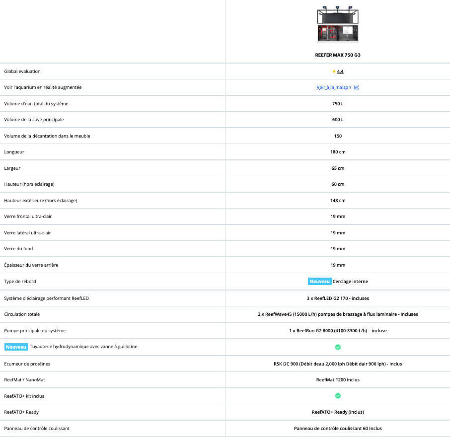 Systèmes Red Sea REEFER™ MAX G3: Ce sont les systèmes idéaux pour le récifal, entièrement équipé avec éclairage ReefLED G2 , Ecumeur, Pompes de brassages , Pompe de remontée , Filtre à rouleaux ReefMat , et osmolateur REEF Ato+ .