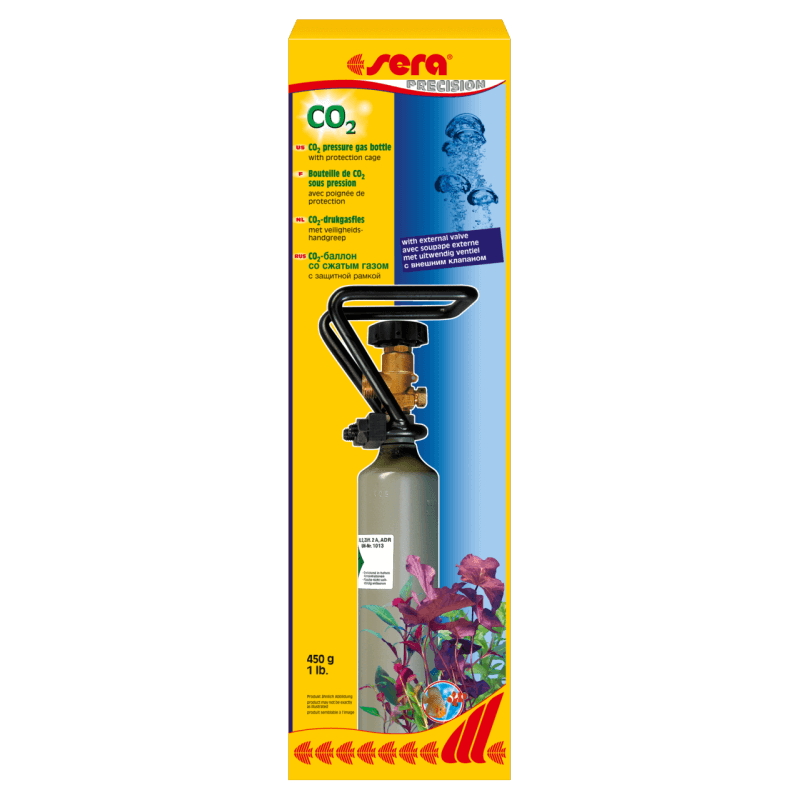 La Sera Bouteille CO₂ rechargeable 450 g est une bouteille de gaz sous pression spécialement conçue pour la fertilisation en CO₂ des aquariums plantés.