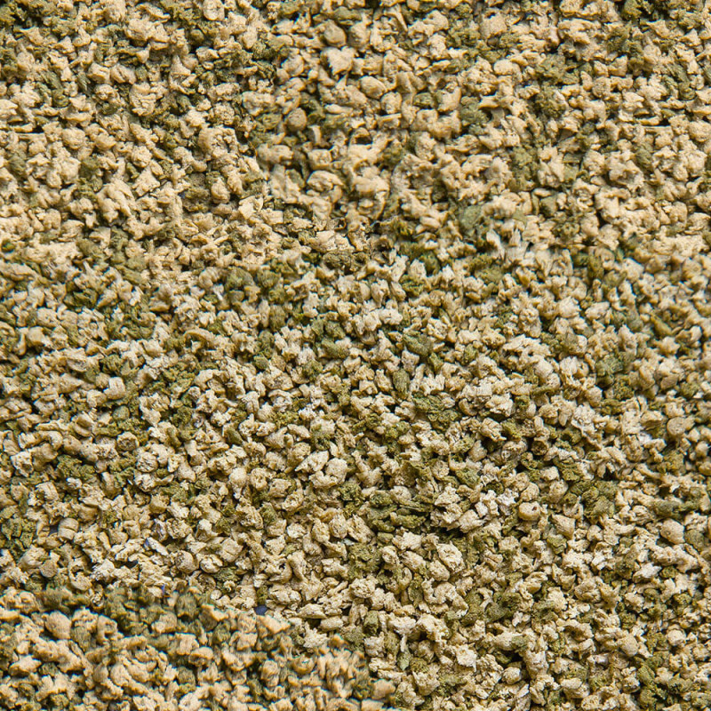 Amidon de maïs, gluten de blé, farine de poisson, poudre d’œuf entier, caséinate de calcium, farine d’insectes (Hermetia illucens, 4 %), farine de blé, huile de poisson (3 %), levure de bière, spiruline (1,2 %), germes de blé, luzerne, ortie, gammarus, persil, mannane-oligosaccharides (0,4 %), algues marines, paprika, algues Haematococcus, épinards, carottes, chair de moule (Perna canaliculus), graines de fenugrec, graines de fenouil, graines d’anis, ail.
