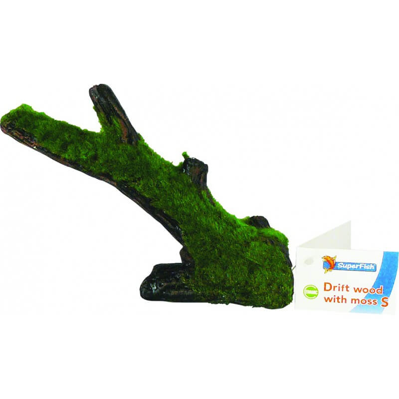 Reproduction en céramique d'une racine avec mousse.