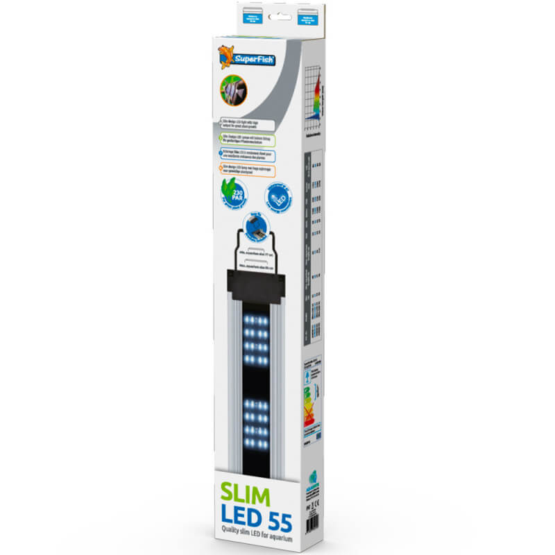 Eclairage Slim LED pour aquariums d'eau douce ouverts et fermés de 58 à 76cm de longueur grâce à ses supports extensibles.