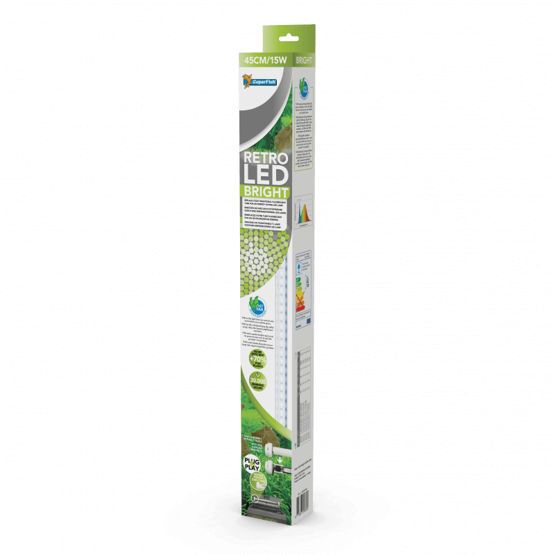 Les lampes RetroLED s’intègrent parfaitement dans votre aquarium avec un système traditionnel T8 ou T5. Et peut également être utilisé comme un éclairage supplémentaire dans un aquarium fait main.