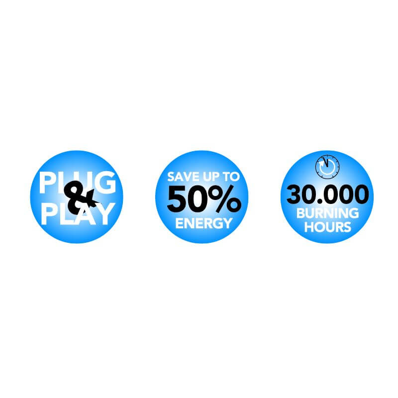 Durée de vie plus longue que les éclairages traditionnels et jusqu’à 50% plus économique.