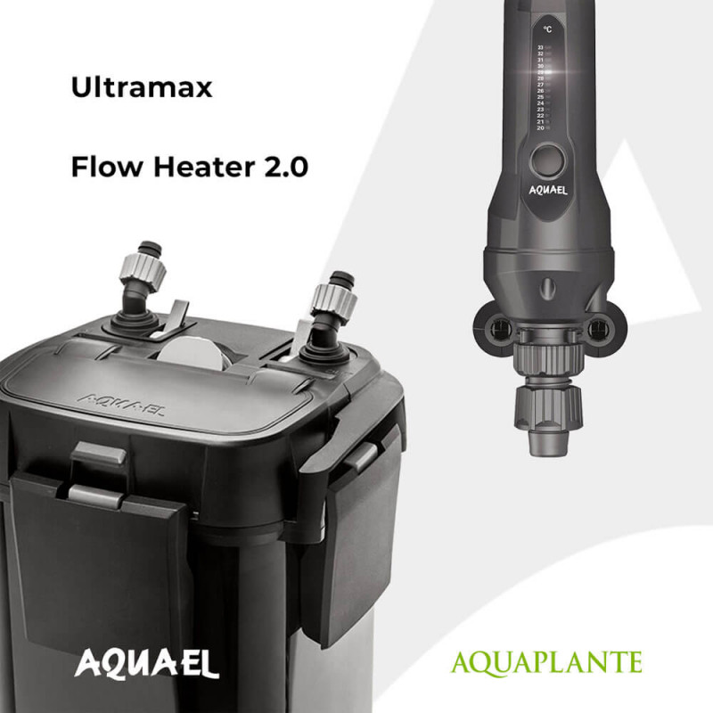 AQUAEL Ultramax 1500 + Flow heater 300W est un pack avec filtre externe pour aquarium jusqu'à 450 litres + un chauffage externe de 300 Watts.