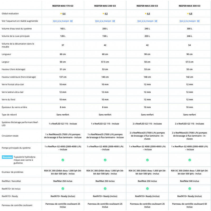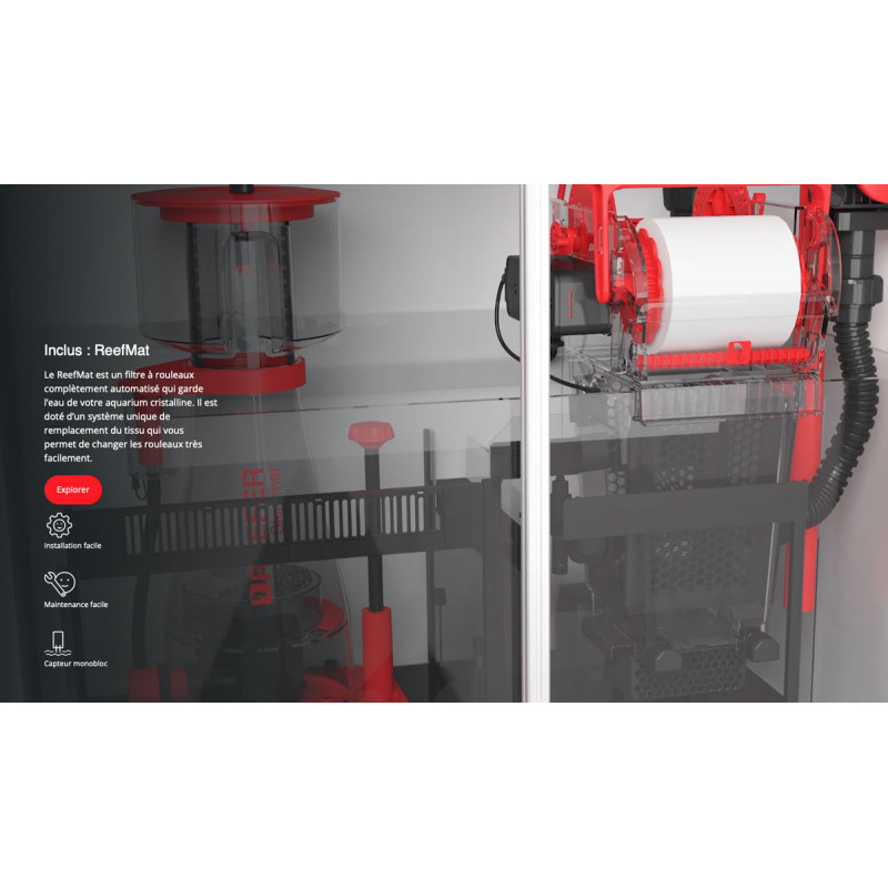 Systèmes Red Sea REEFER™ MAX G2+: Ce sont les systèmes idéaux pour le récifal, entièrement équipé avec éclairage LED , Ecumeur, Pompes de brassages , Pompe de remontée , Filtre à rouleaux ReefMat , et osmolateur REEF Ato+ .