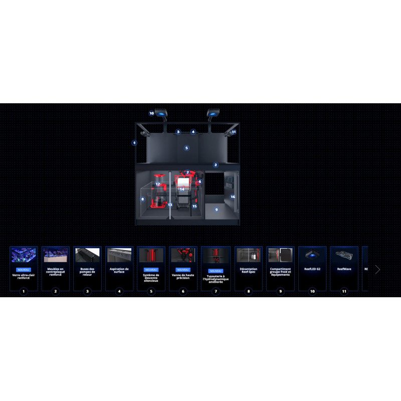 Systèmes Red Sea REEFER™ MAX G2+: Ce sont les systèmes idéaux pour le récifal, entièrement équipé avec éclairage LED , Ecumeur, Pompes de brassages , Pompe de remontée , Filtre à rouleaux ReefMat , et osmolateur REEF Ato+ .