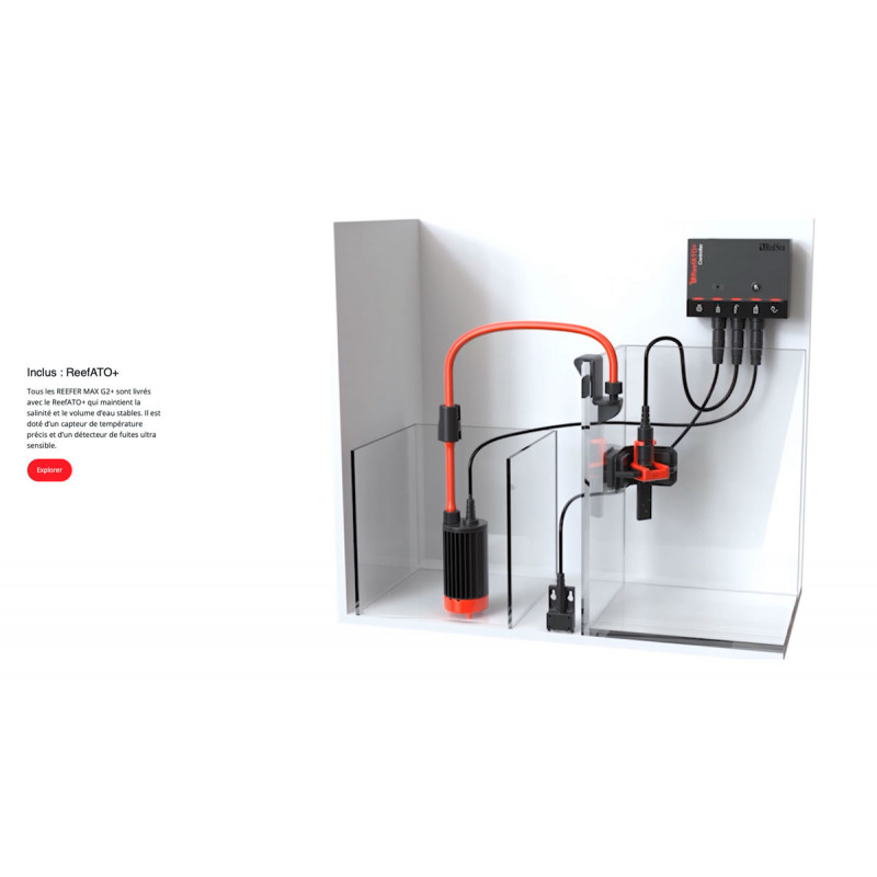 Systèmes Red Sea REEFER™ MAX G2+: Ce sont les systèmes idéaux pour le récifal, entièrement équipé avec éclairage LED , Ecumeur, Pompes de brassages , Pompe de remontée , Filtre à rouleaux ReefMat , et osmolateur REEF Ato+ .