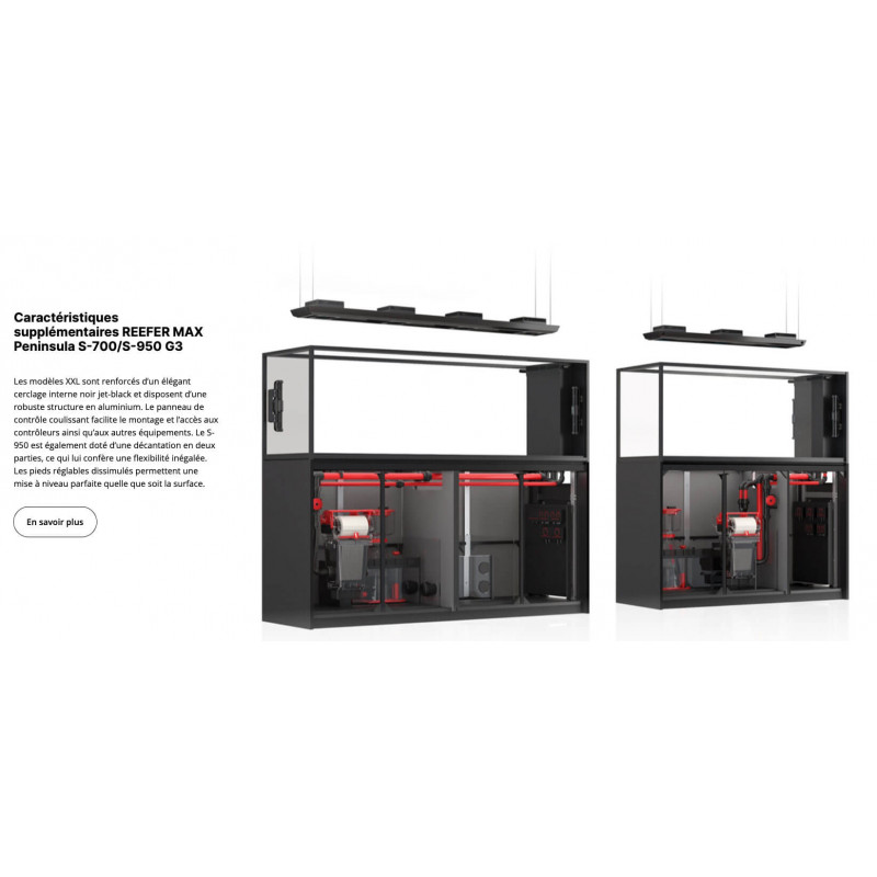 Systèmes Red Sea REEFER™ MAX G2+: Ce sont les systèmes idéaux pour le récifal, entièrement équipé avec éclairage LED , Ecumeur, Pompes de brassages , Pompe de remontée , Filtre à rouleaux ReefMat , et osmolateur REEF Ato+ .