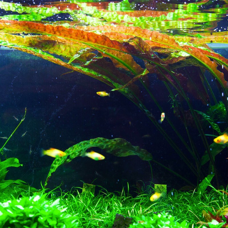 D'un très beau vert, virant pour les feuilles les plus exposées à la lumière au rouge intense sur la partie inférieure elle est aujourd'hui un très bon choix pour proposer un beau contraste en aquarium.
