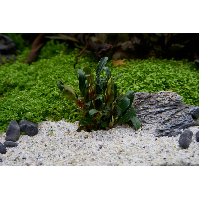 Le bucephalandra ne doit pas être planté dans le sol mais pousse de la même façon qu'une anubias ou qu'un microsorum, sur une racine ou sur une roche.