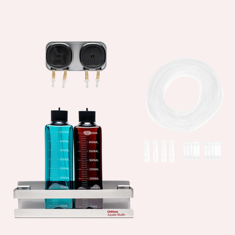 Le système de dosage Chihiros à 2 sorties permet un dosage simple et précis des engrais et des conditionneurs d’eau par exemple dans votre aquarium planté. Cette pompe peut aussi tout à fait permettre la supplémentation en aquarium récifal.