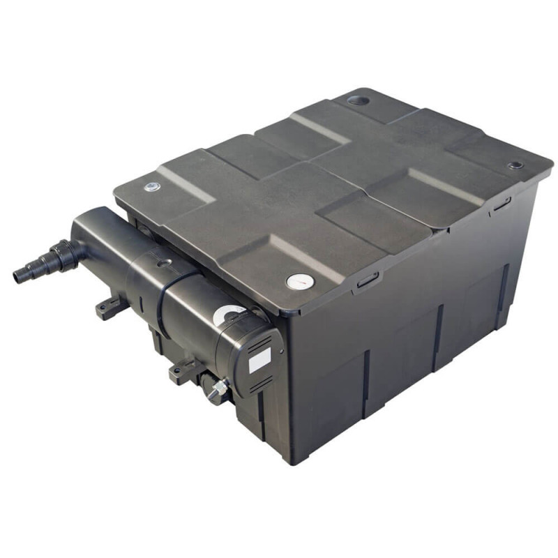 Ce filtre est parfaitement adapté aux bassins jusqu’à 36 000 litres sans poissons (ou environ 16 à 18 000 litres avec poissons).