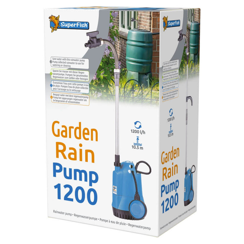 La Superfish Garden Rain Pump 1200 est une pompe submersible compacte et polyvalente spécialement conçue pour récupérer et utiliser l’eau de pluie.