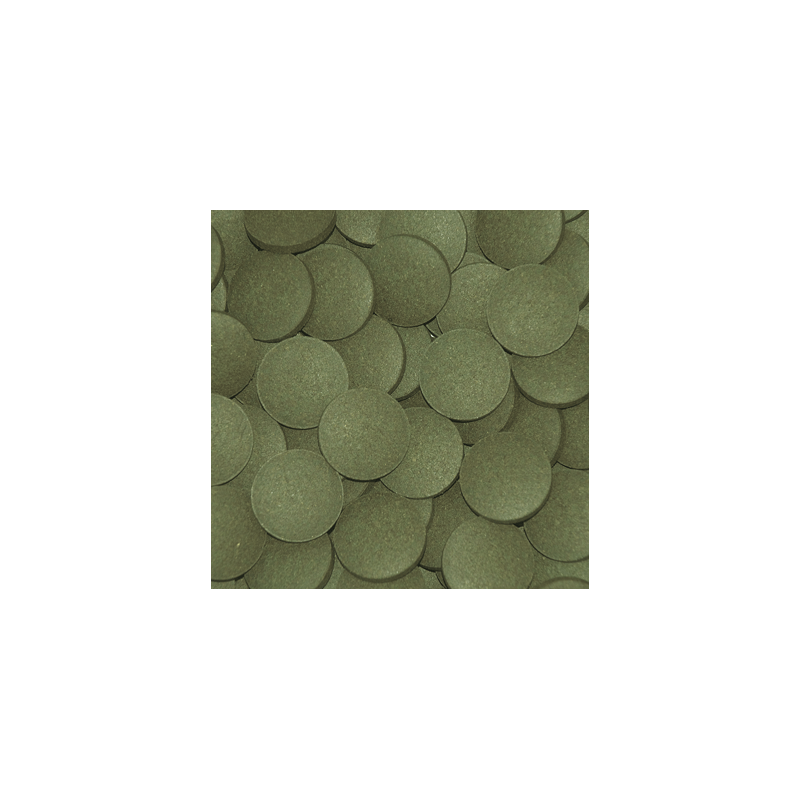 Des pastilles végétales descendantes avec un diamètre de 25 mm pour l’alimentation quotidienne de grandes espèces de poissons de la famille des Loricariidae, par exemple Hypostomus plecostomus, et d’un groupe de mangeurs d’algues de taille plus petite.