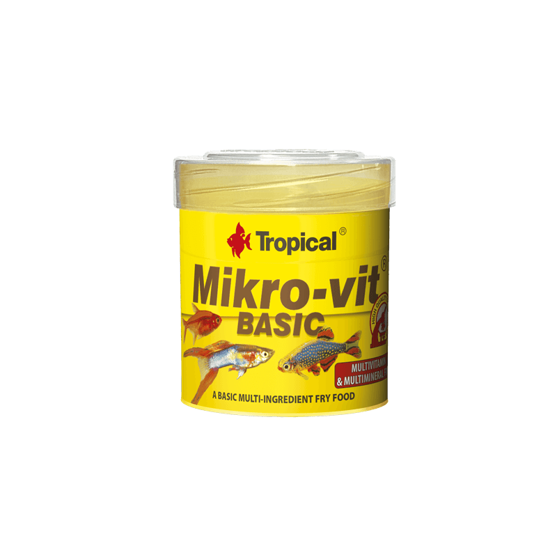 MIKROVIT BASIC Une nourriture de base à multi ingrédients pour alevins, méticuleusement émiettée pour permettre aux petits poissons de se nourrir sans problèmes.
