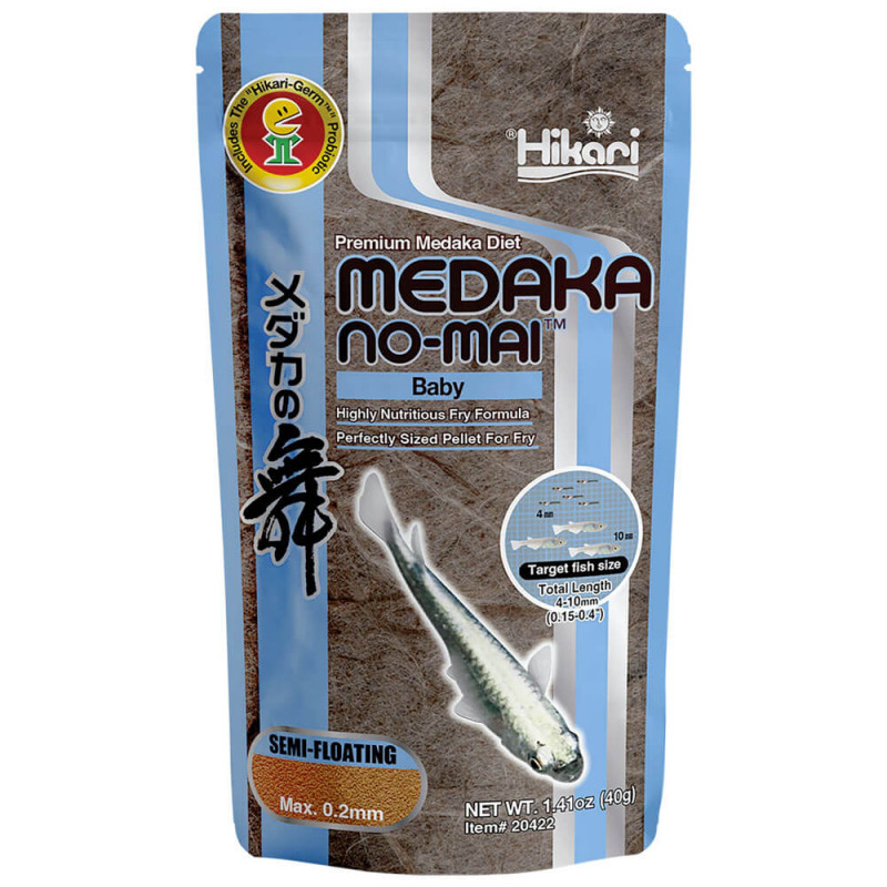Hikari medaka no-mai baby 40g est spécialement conçue pour les alevins de Medaka. Les micro-granulés sont calibrés pour des poissons de moins de ~10 mm .