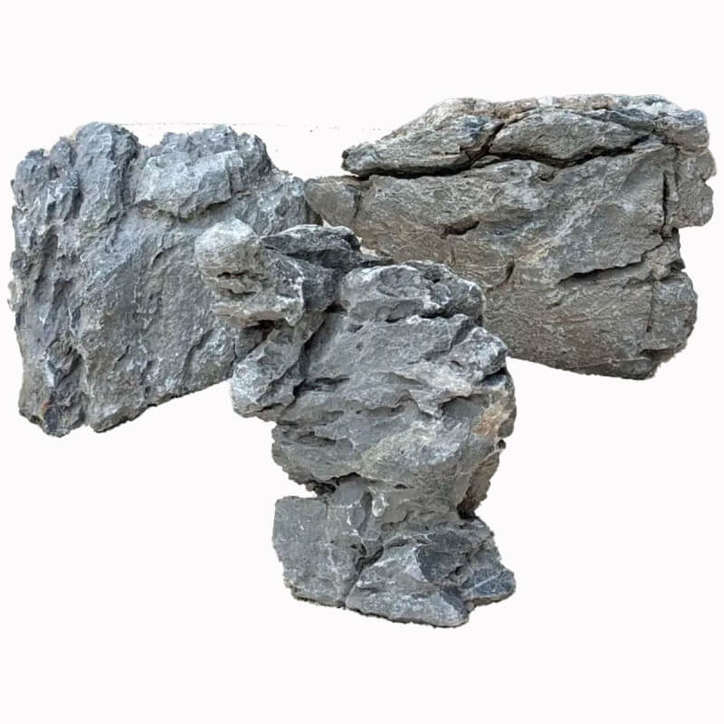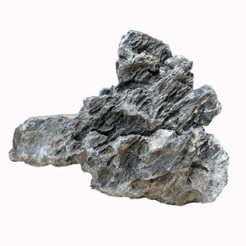 Roche naturelle gris-bleute aux veines blanches minerales, ideale pour composer des paysages aquatiques realistes et ajouter du caractere a votre aquarium.