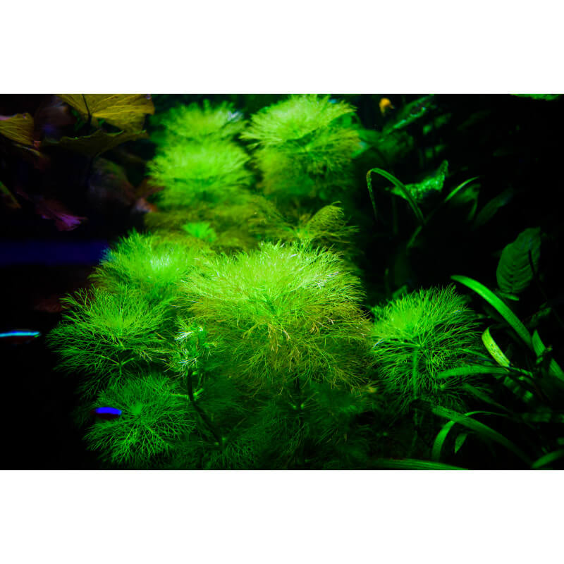 Une plante d'aquarium de toute beauté avec sa couronne de feuilles vert tendre finement ramifiées.
