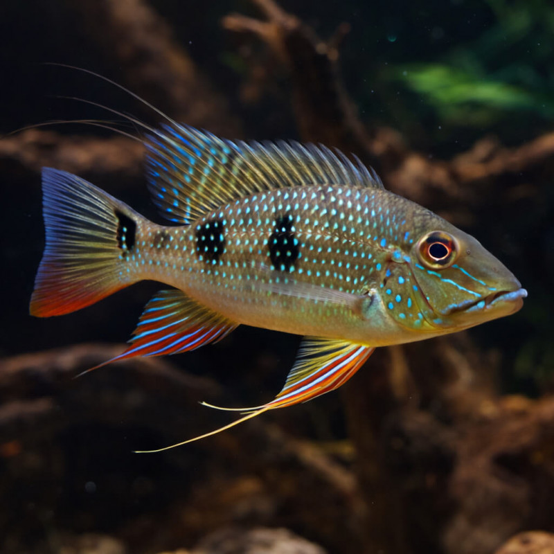 Son nom fait sourire : Satanoperca daemon, soit litteralement le "poisson-demon". Pourtant, celui qui prend le temps de l'observer dans un aquarium bien aménagé découvre tout le contraire - un cichlidé d'une douceur remarquable, aux reflets nacrés et irisés, qui passe ses journées à fouiller calmement le sable de ses lèvres en quête de micro-organismes. Les Chinois, eux, ont choisi un tout autre surnom : ils l'appellent le "cichlidé nacre de perle". Difficile de dire qui a tort.