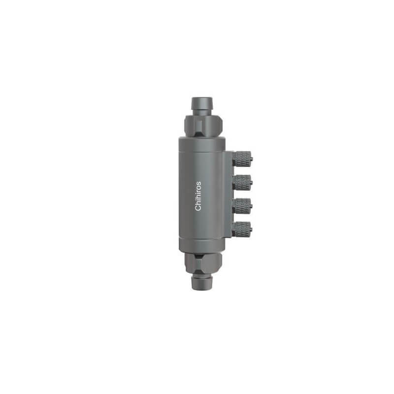 Les ports inutilisés restent automatiquement scellés, évitant ainsi toute manipulation supplémentaire. L’adaptateur est conçu pour fonctionner avec des tubes de dosage fins (2/4 mm), garantissant une installation propre et discrète.
