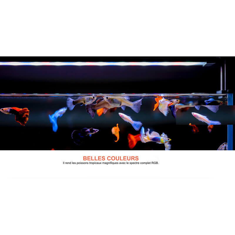 Les éclairages RGB permettent de faire ressortir toutes les couleurs des plantes, des poissons mais aussi du décors de l’aquarium.