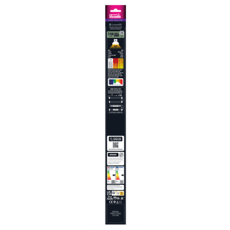 Avec ses 47 cm de longueur et sa puissance de 24 watts, elle convient parfaitement aux terrariums de taille moyenne à grande. Elle diffuse une lumière intense et homogène, idéale pour éclairer l'ensemble de l'habitat sans créer de zones d'ombre marquées.