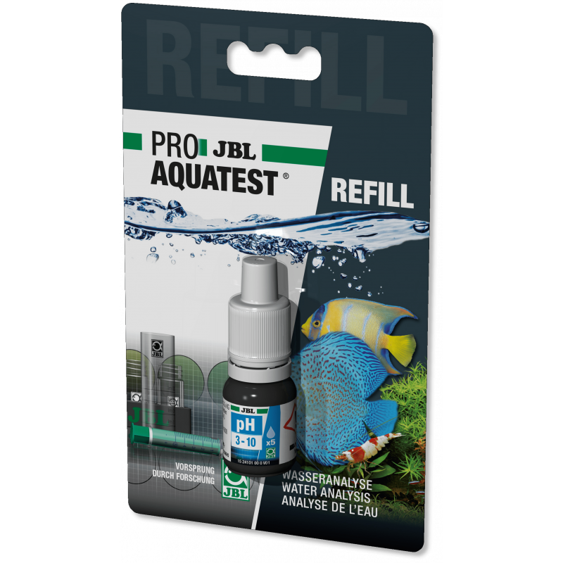 Recharge pour test rapide pour déterminer le pH dans les bassins et aquariums d'eau douce ou d'eau de mer, sur une plage de 3,0-10