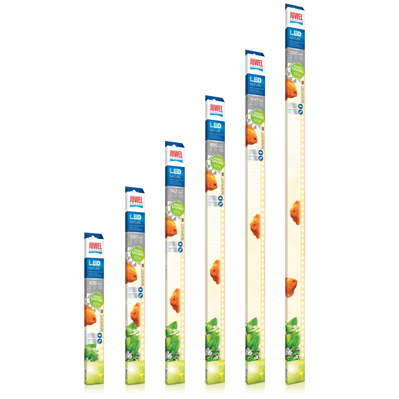 Le système d'éclairage LED Nature produit une lumière chaude et naturelle. Le spectre lumineux particulier du tube stimule la photosynthèse des plantes et souligne en outre les couleurs vertes de l’aquarium.